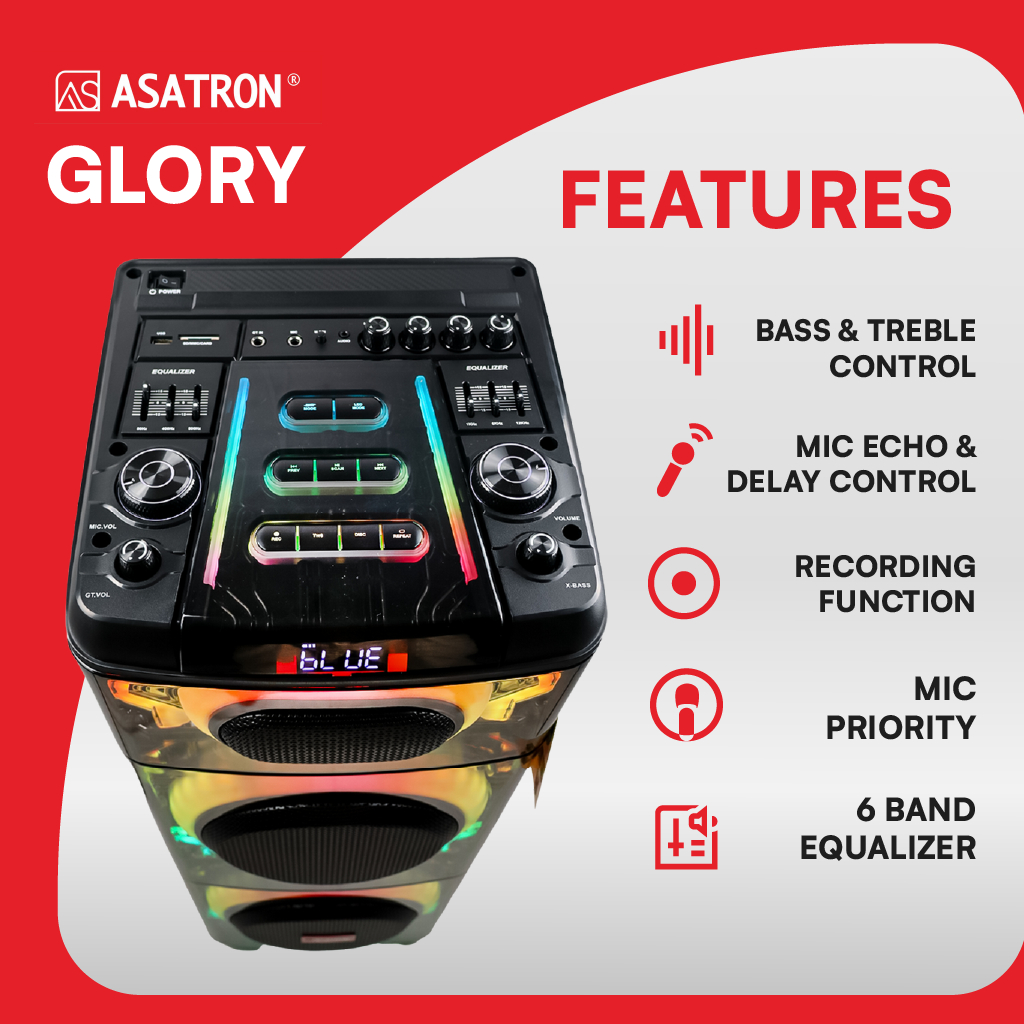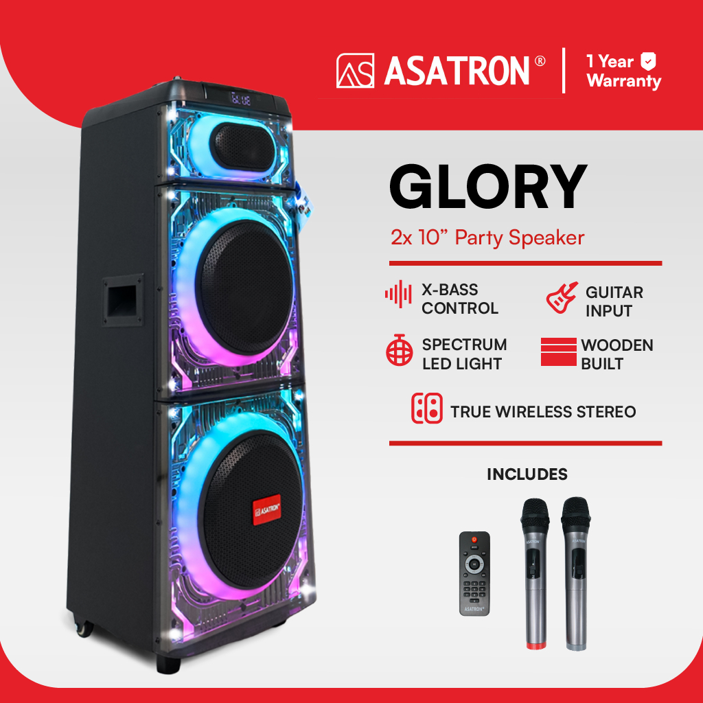 mall inline badgeAsatron Glory Dual 10 Inch Bluetooth Party Speaker with 2 Wireless Mic TWS