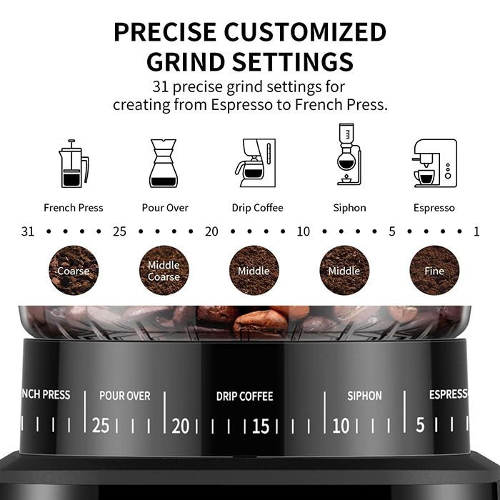 Otten Caffizio - Digital Electric Coffee Grinder Stainless Burr | Mesin Penggiling Kopi Elektrik Gilingan Adjustable