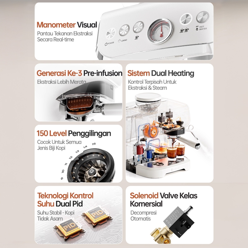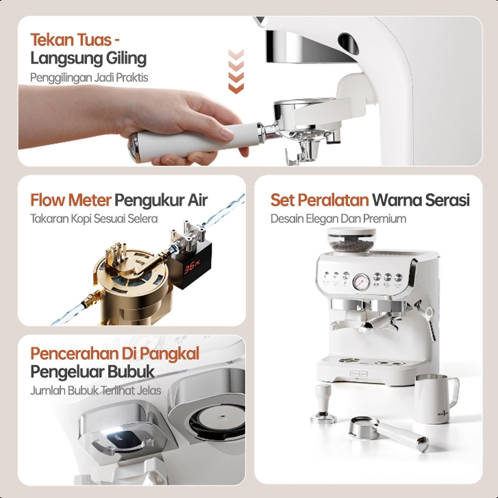Mesin Kopi Grinder Integrated - Dual Pump Dual System, 58mm Portafilter, Penggiling Kerucut, PID Contro, untuk Pembuat K