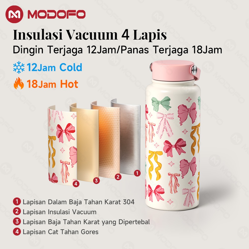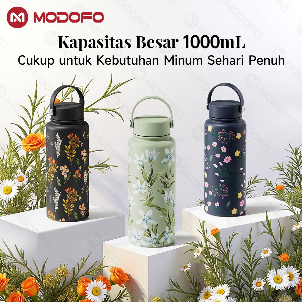 MODOFO Botol Minum Aesthetic 1000ml Lucu Tumbler Stainless Tumbler Tahan Panas Dingin 24 Jam