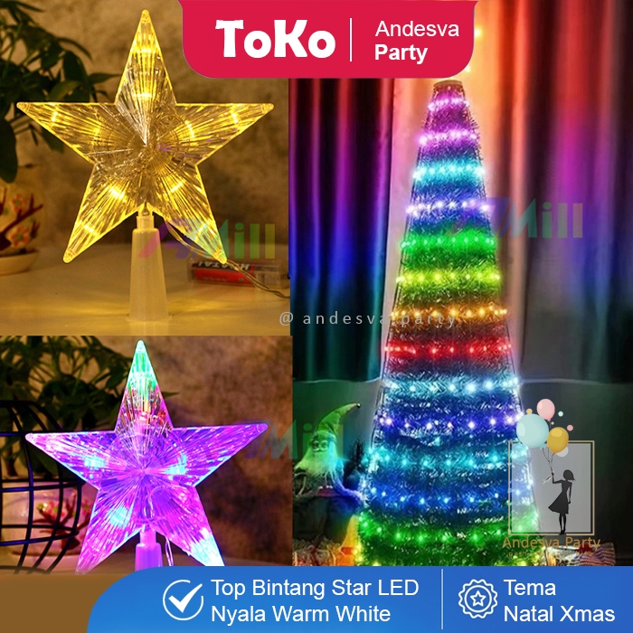 Top Bintang Pohon Natal Lampu LED Hiasan Natal Christmas Star Light / aksesoris top bintang led