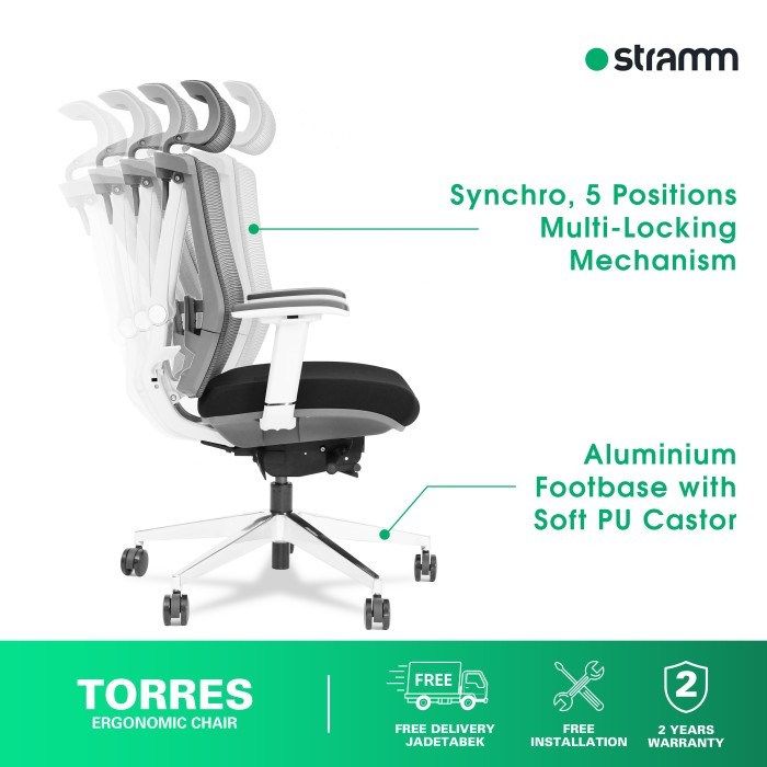Kursi Kantor Ergonomis Stramm Torres with Aluminium Footbase
