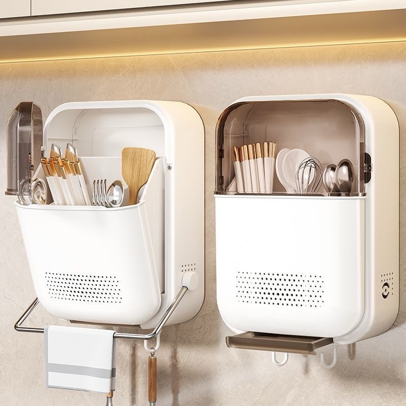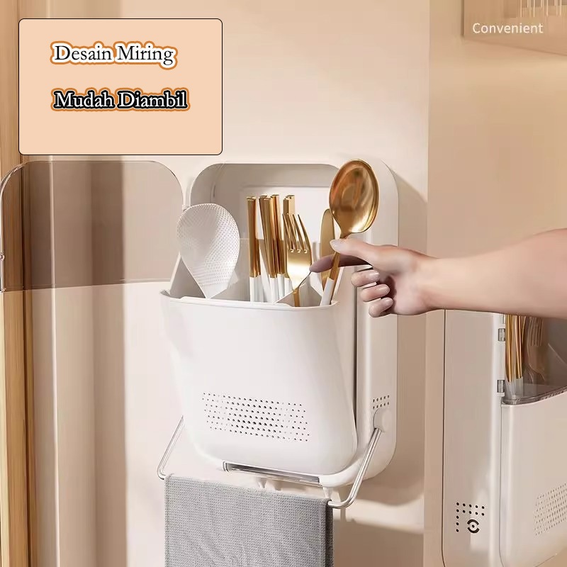 VALUEDA Tempat Sendok Garpu Sumpit Dengan Tutup Rak Wadah Dapur/Kotak Penyimpanan yang Terpasang di Dinding
