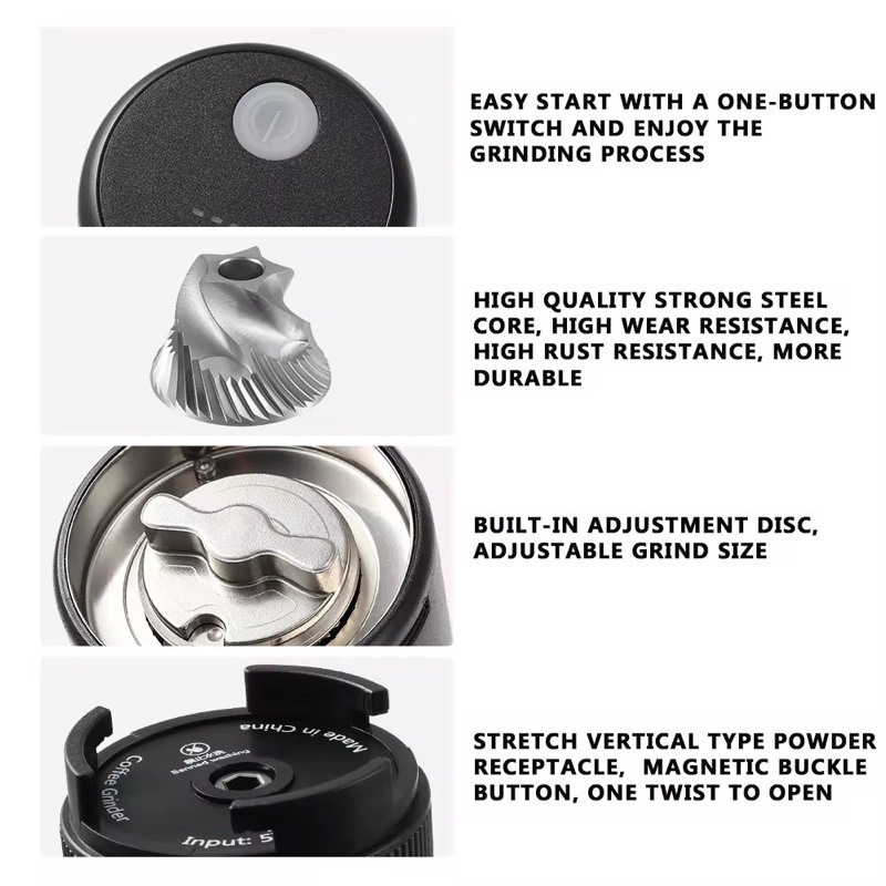 Electric Coffee Grinder Stainless Steel Burr - Mini Portable Grinder Kopi Charger