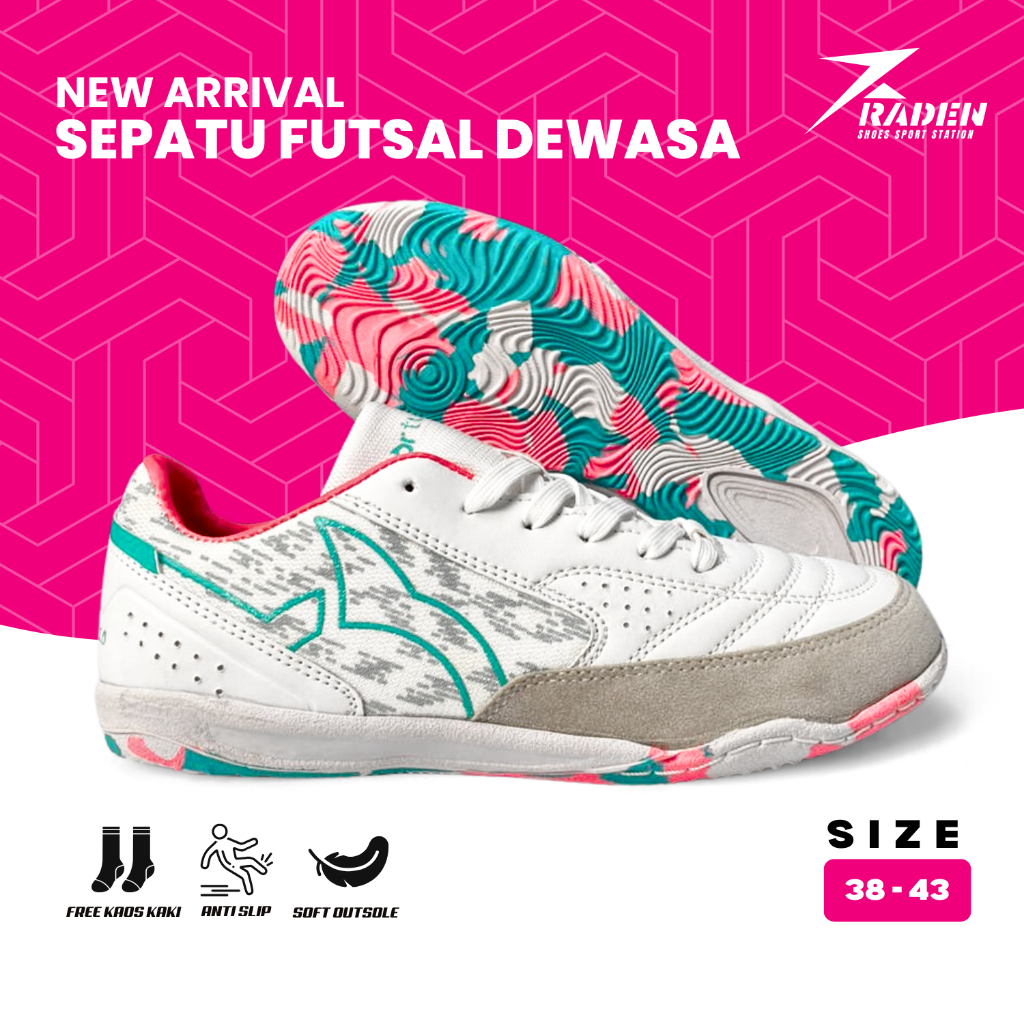 PAKET KUMPLIT - Ortuseight Sepatu Futsal Jogosala Vanquish - Light Grey/ Ultra/ Teal Sepatu Futsal Dewasa Size 38-43