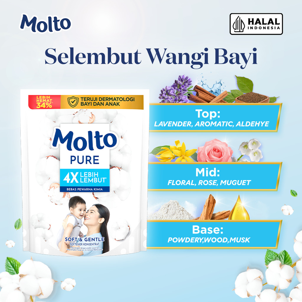 Molto Pelembut & Pewangi Pakaian Bayi Softener Konsentrat Pure Soft & Gentle 1.5 L x3