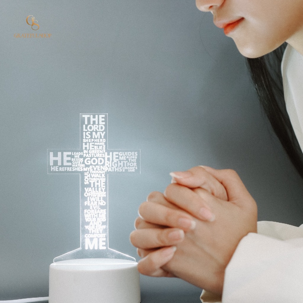Grateful - Akrilik Mazmur LED Lamp/ Lampu Kristen Psalm Pajangan Cewek Istri Kado untuk Ayah Ibu