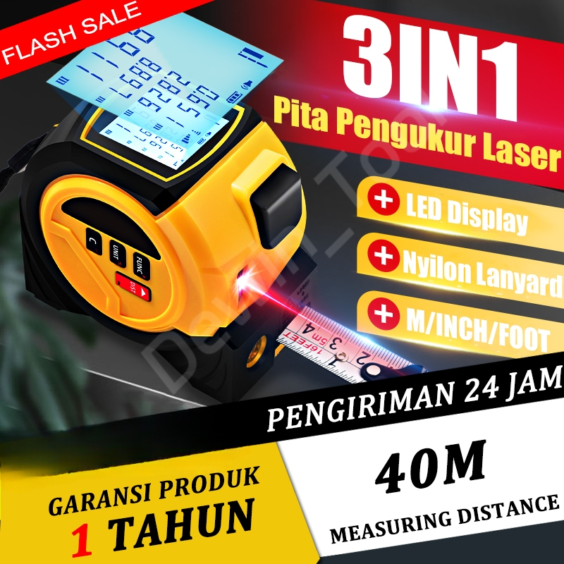 DEWIN meteran laser digital 3IN1 Meteran Digital Dengan Presisi Tinggi Meteran Laser Pita Baja