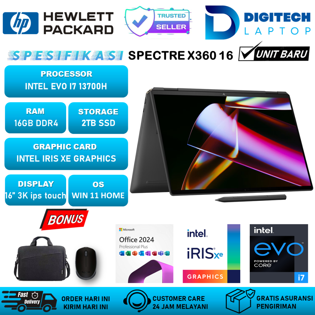 Laptop HP Spectre X360 Intel Evo i7 13700H RAM 16GB 2TB SSD 16" 3K IPS Touchscreen Windows 11 Home