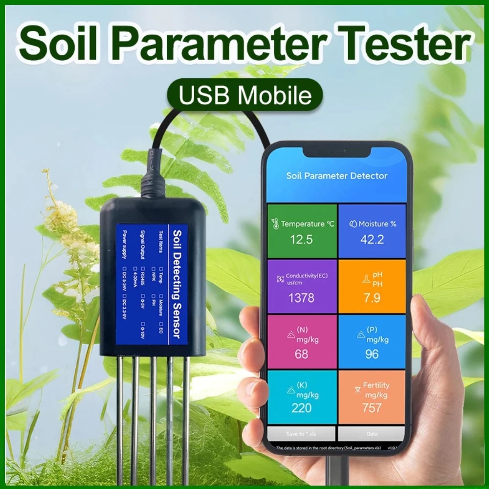 PH tanah NPK N P K EC Fertilily Moisture Temperature 8 in 1 8in1 Soil Tester meter USB C Micro USB langsung HP phone Android ada APK