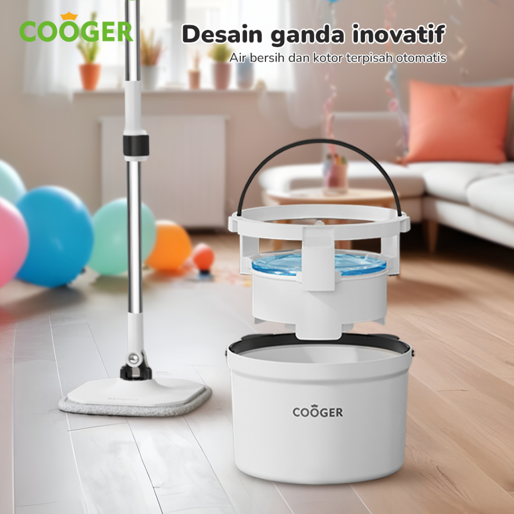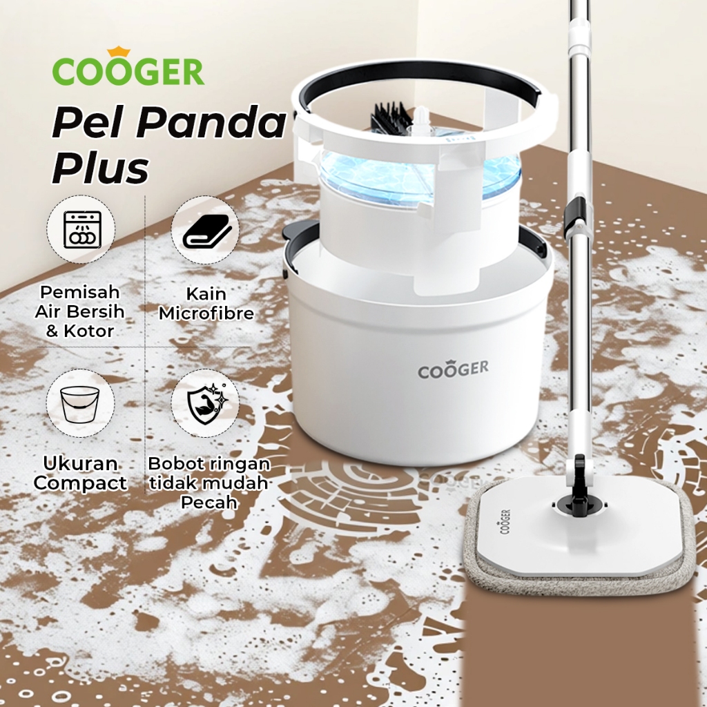COOGER Alat Pel Lantai Putar Plus Bentuk Panda Single Bucket Plus Spin Mop 2IN1 Panda Dual Teknologi Pemisah Air