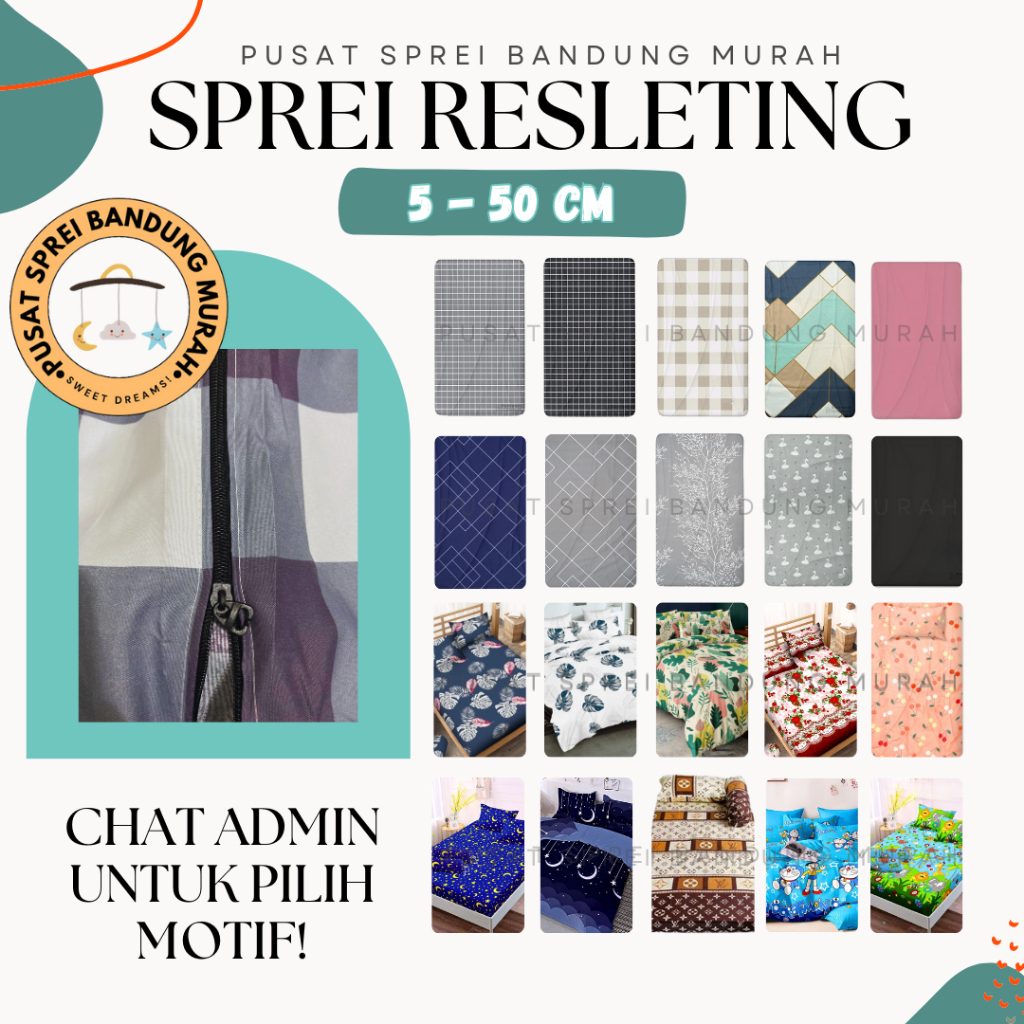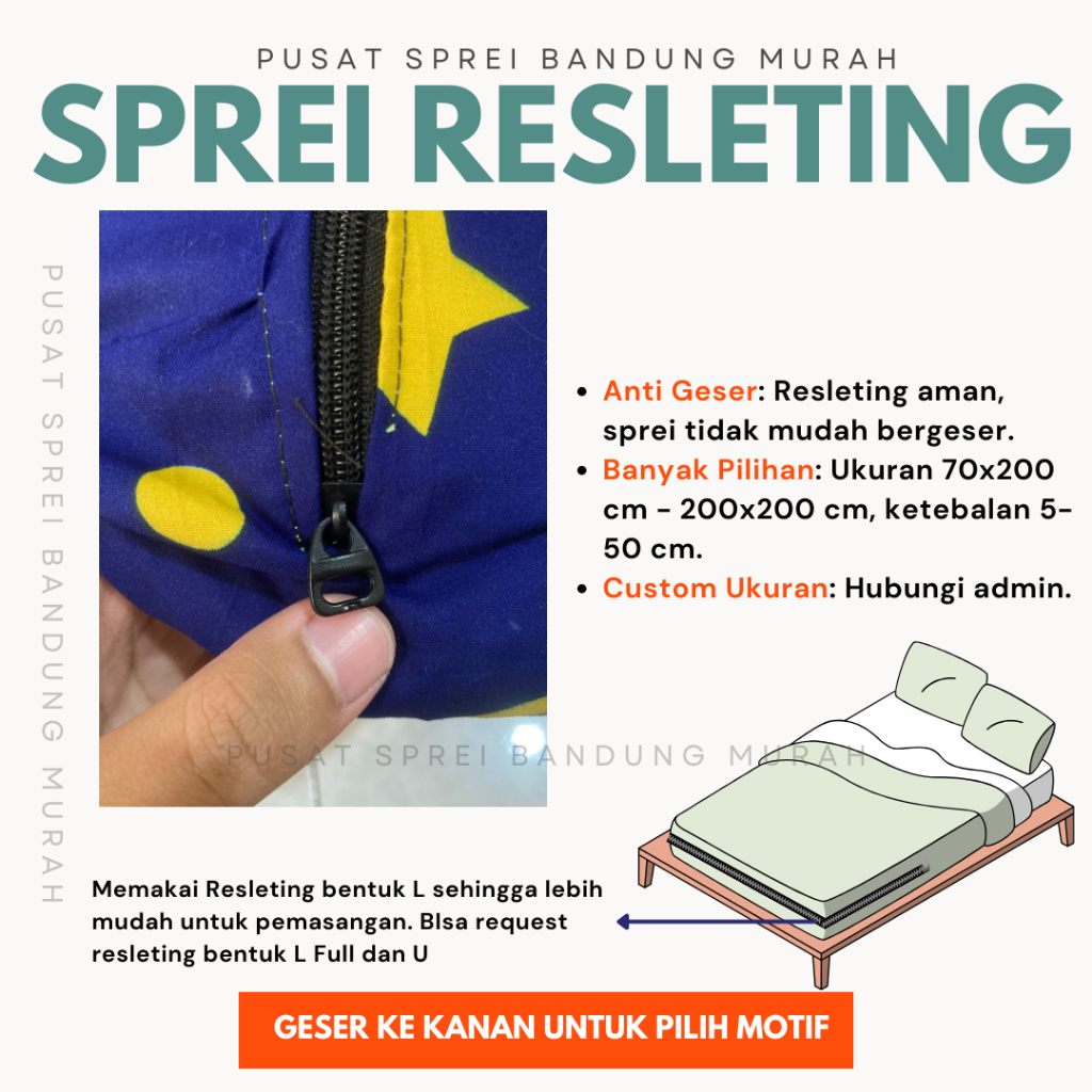 Sprei Resleting Sleting Murah - Sarung Kasur Bungkus Katun Disperse 5-50cm Semua Ukuran ⭐
