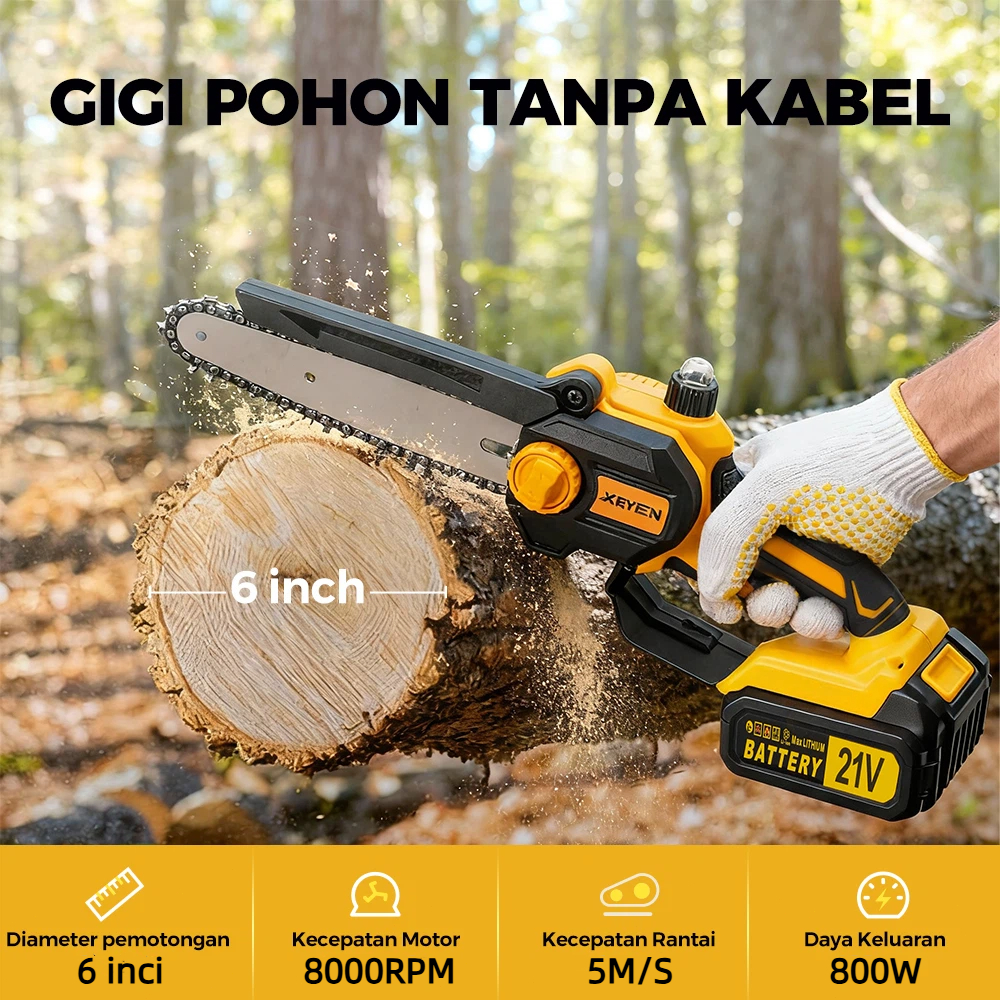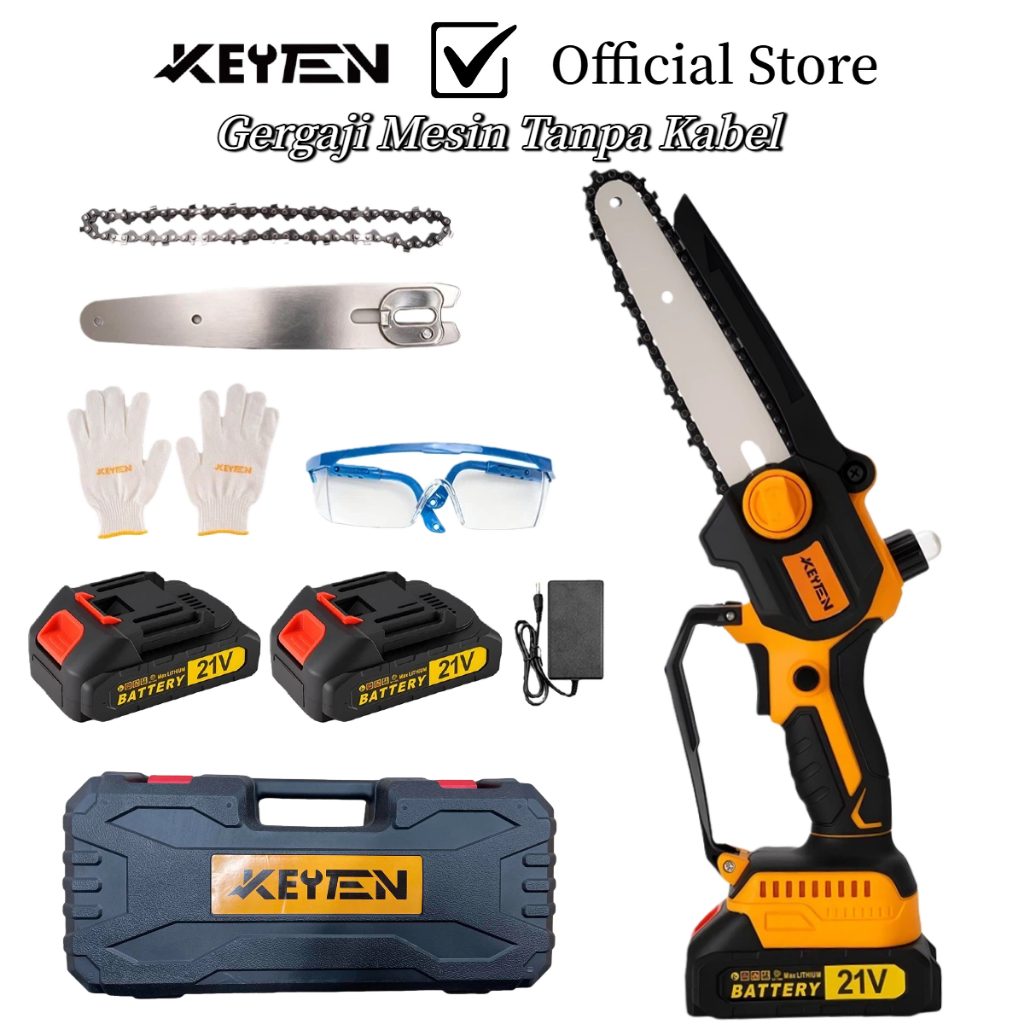 KEYTEN 6 Inch Gergaji Mesin Mini Pemotong Kayu Cordless Chainsaw Mini Listrik Portable Lithium
