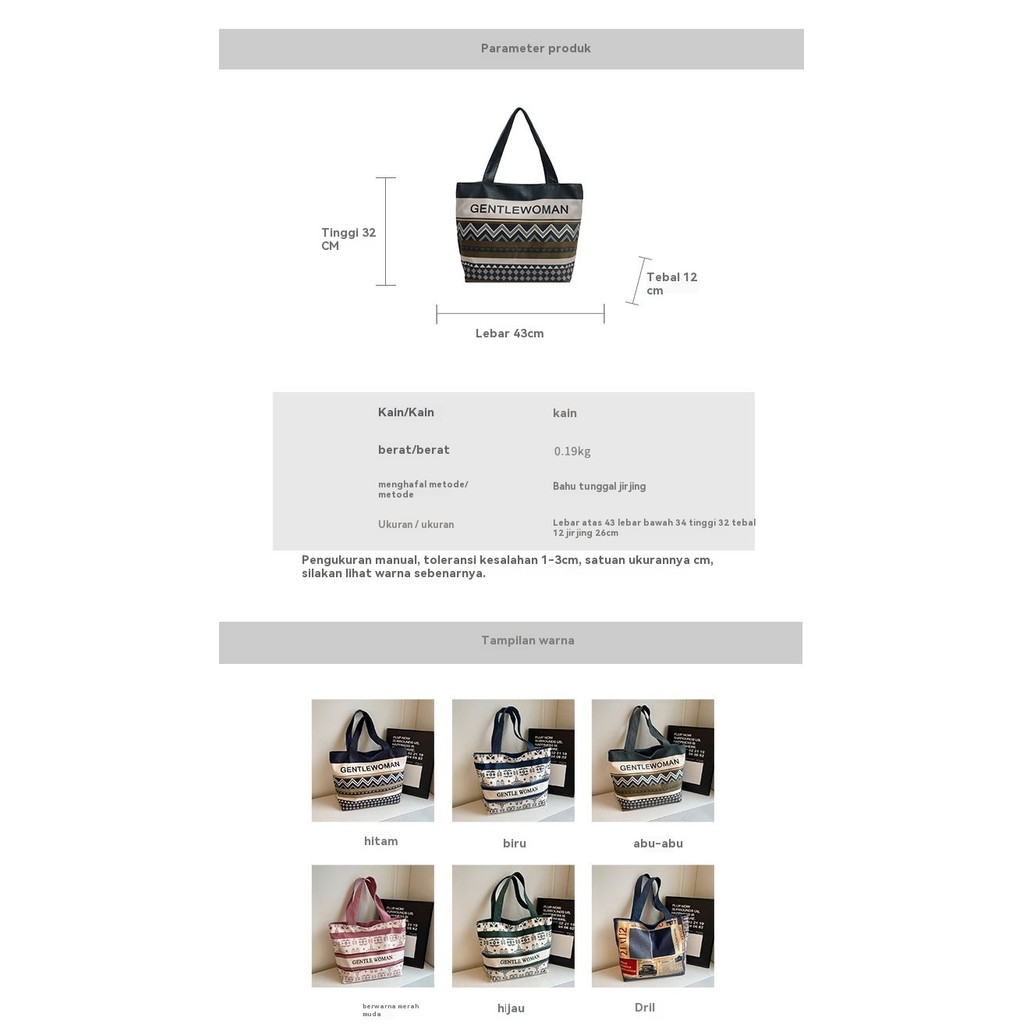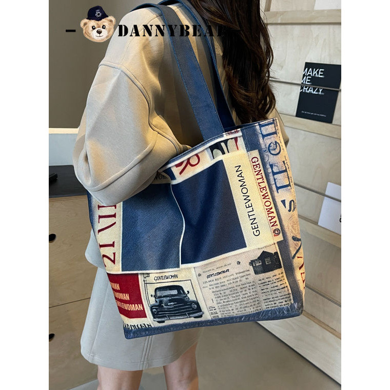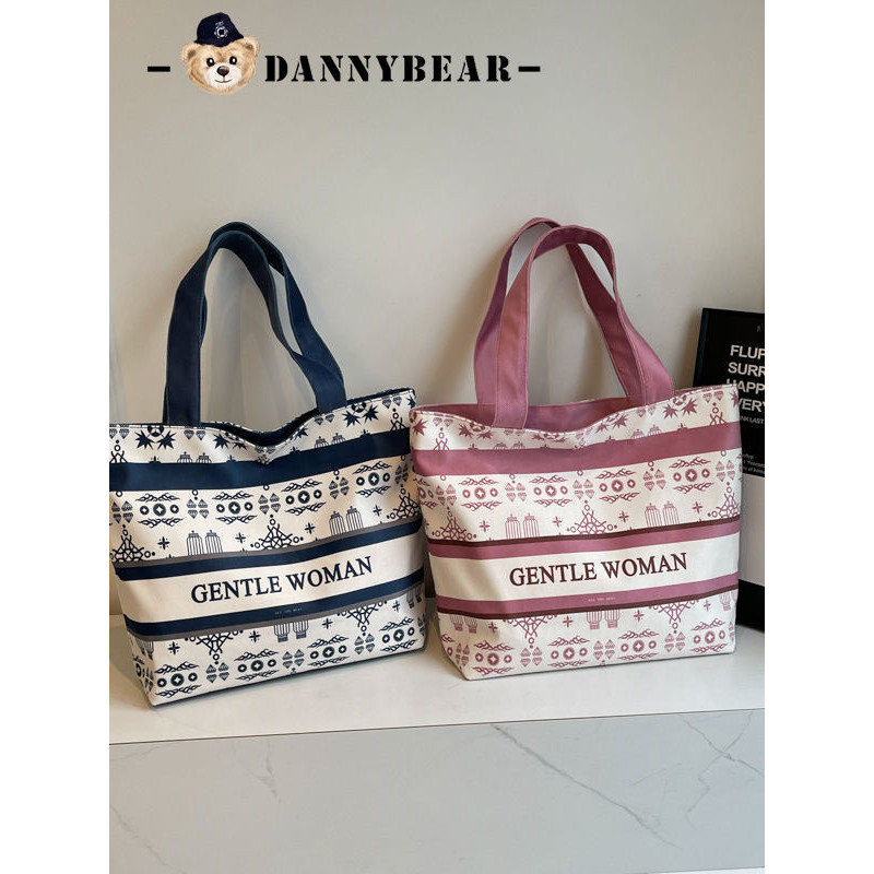 Tas Kanvas Biru Denim untuk Wanita Kapasitas Besar Tas Tote Bahu Santai Baru