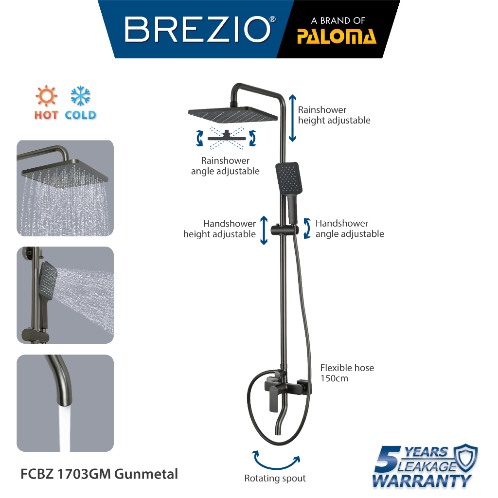 BREZIO Shower Tiang Set Column Keran Mandi Kran Air Panas Dingin Faucet Bathtub Bath Shower Mixer Hot Cold Kamar Mandi Bathroom