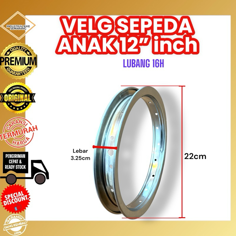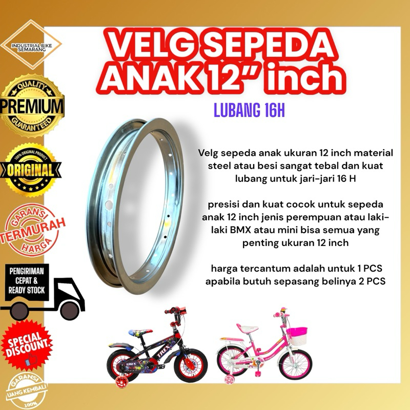 ( VELG 12 INCH / 16H / CROOM ) Roda Velg Rims Sepeda Anak 12inch Lubang 16 H Besi Steel BMX Mini