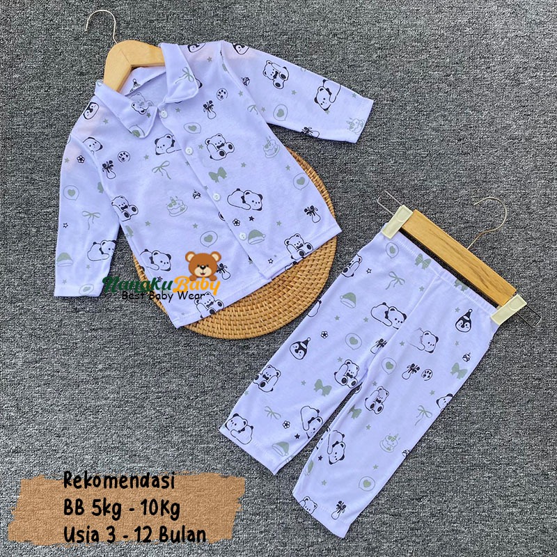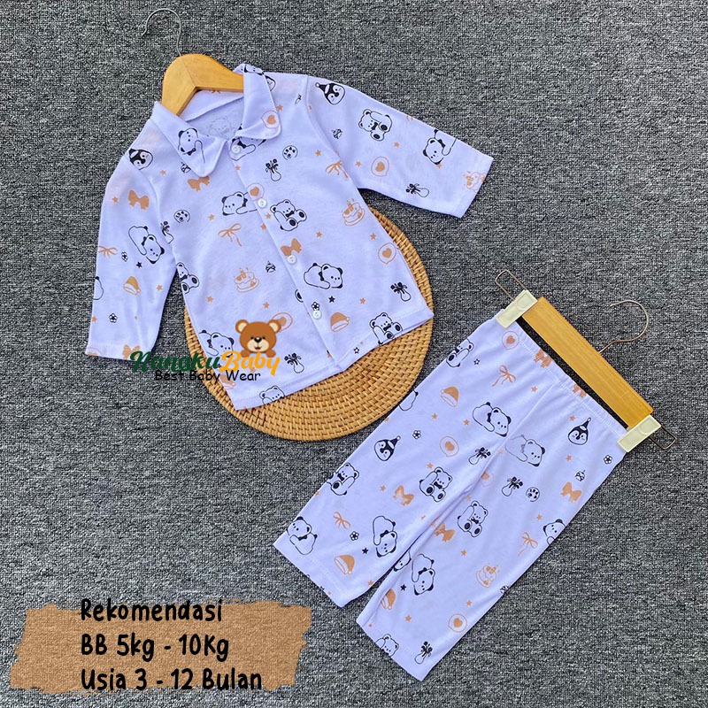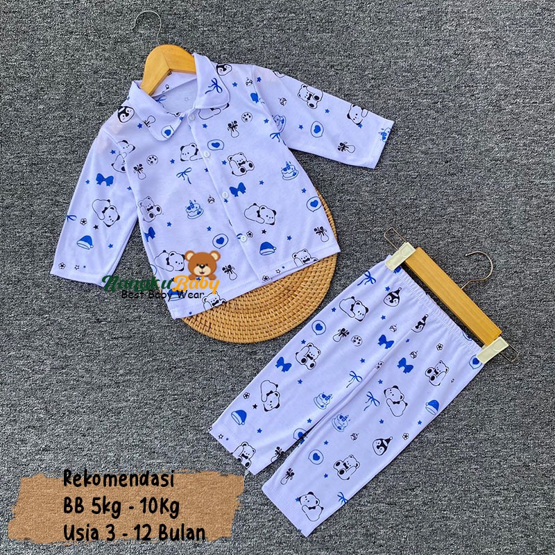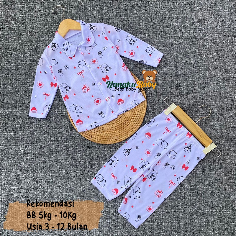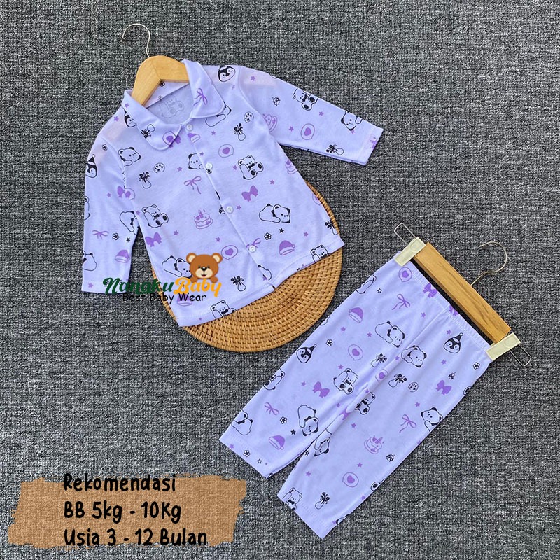 Nanaku Baby - Setelan Panjang Bayi Kancing Depan Motif Bear Tart | Baju Bayi Model Kerah & Kancing Depan Usia 3–12 Bulan
