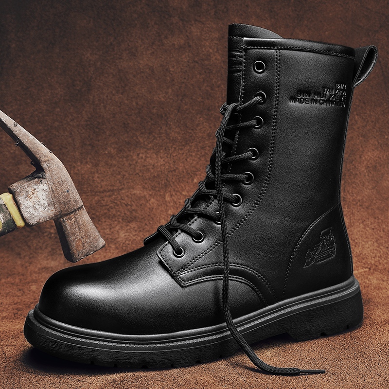 Profesional Sepatu Safety Boots Tinggi Pria Cowok Outdoor Septy Ujung Besi Kerja Septy Anti-smash Proyek Olahraga Lapang