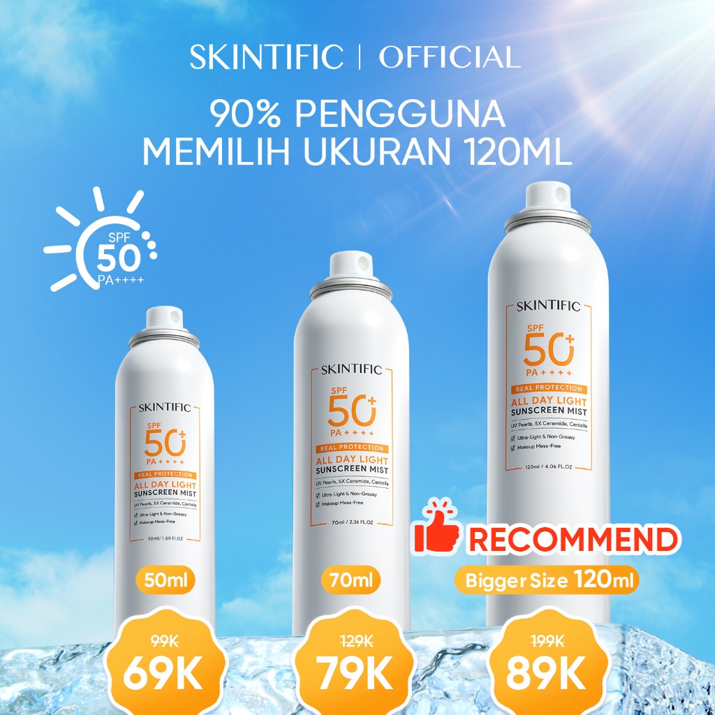 Skintific Official Store | SKINTIFIC All Day Light Sunscreen Mist SPF 50 PA++++ | Sunscreen Spray UV Mist Tone Up Sun