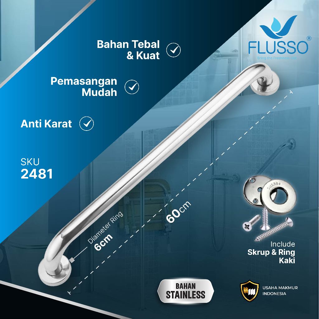 30/40/50/60cm Handle Kamar Mandi Pegangan Bathub Gagang Bar Kamar Mandi Toilet Bahan Stainless