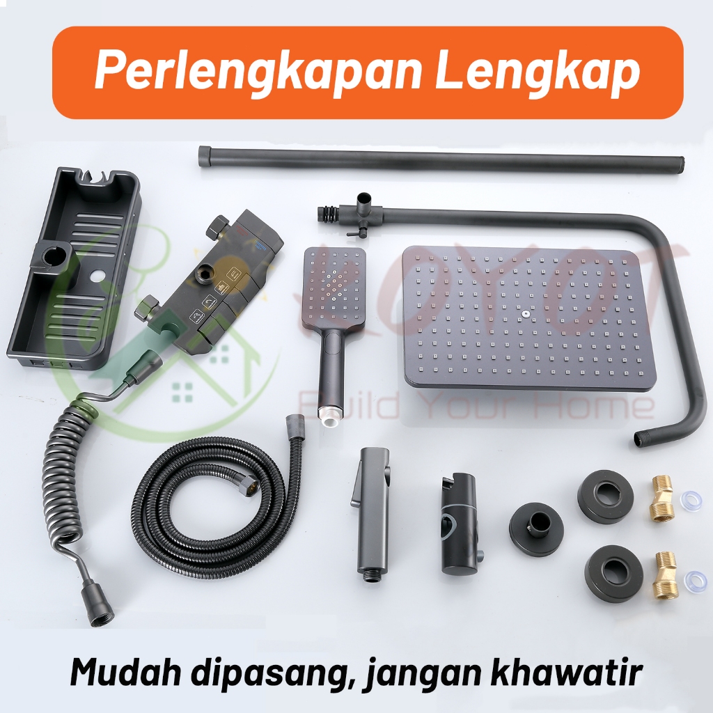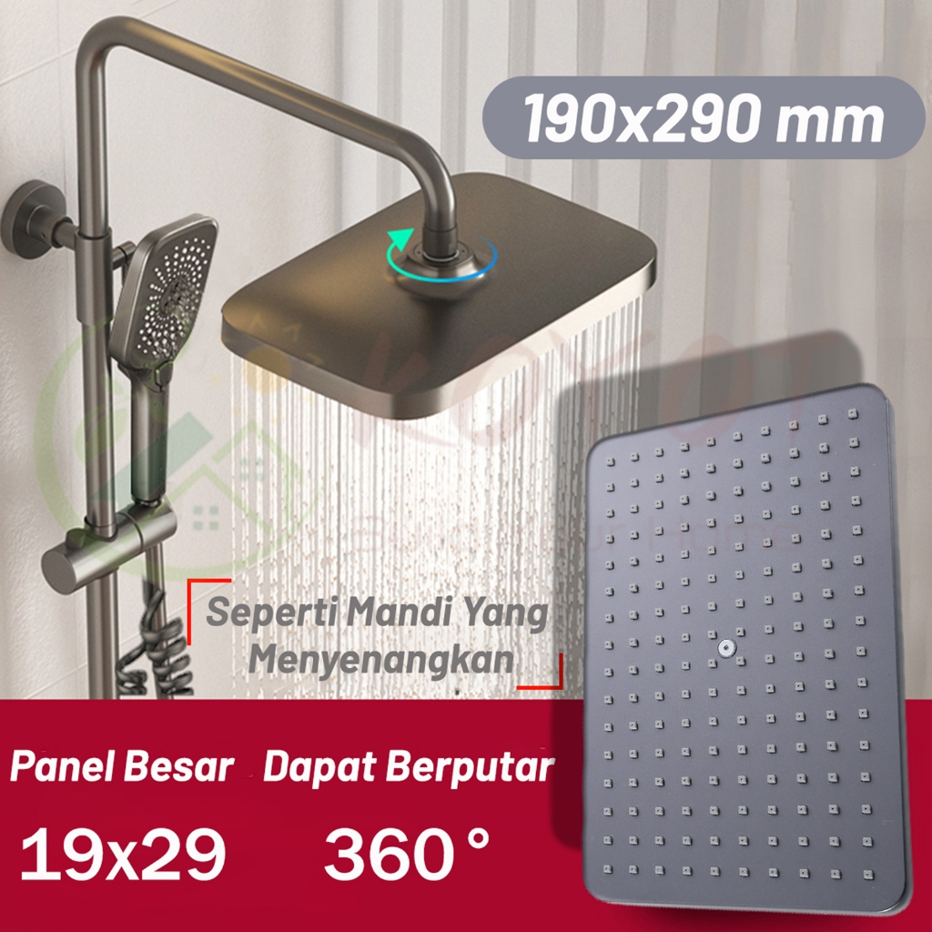 KOYOT Desain Tuts Piano Shower Kamar Mandi Full Set Panas Dingin Persegi Abu-abu dengan Mixer Panas Dingin 4 Ways / Jet Shower