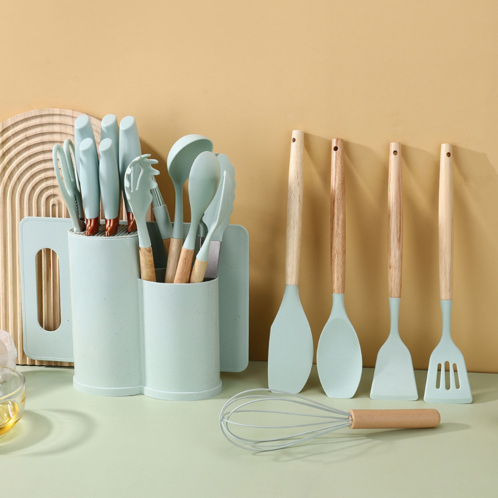 FUNNYCOOK Set Alat Dapur Silikon Sutil Silicone Kitchen Set 19 IN 1 Spatula Tahan Panas Free Wadah