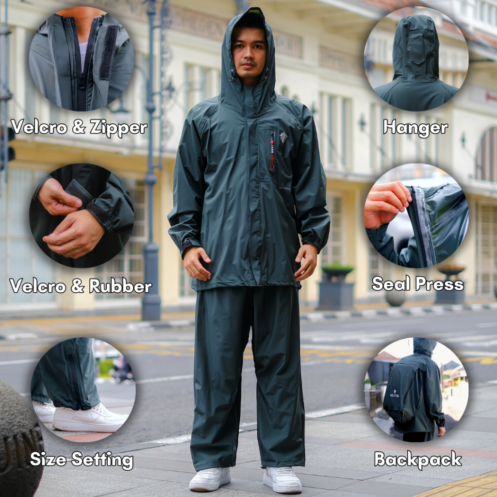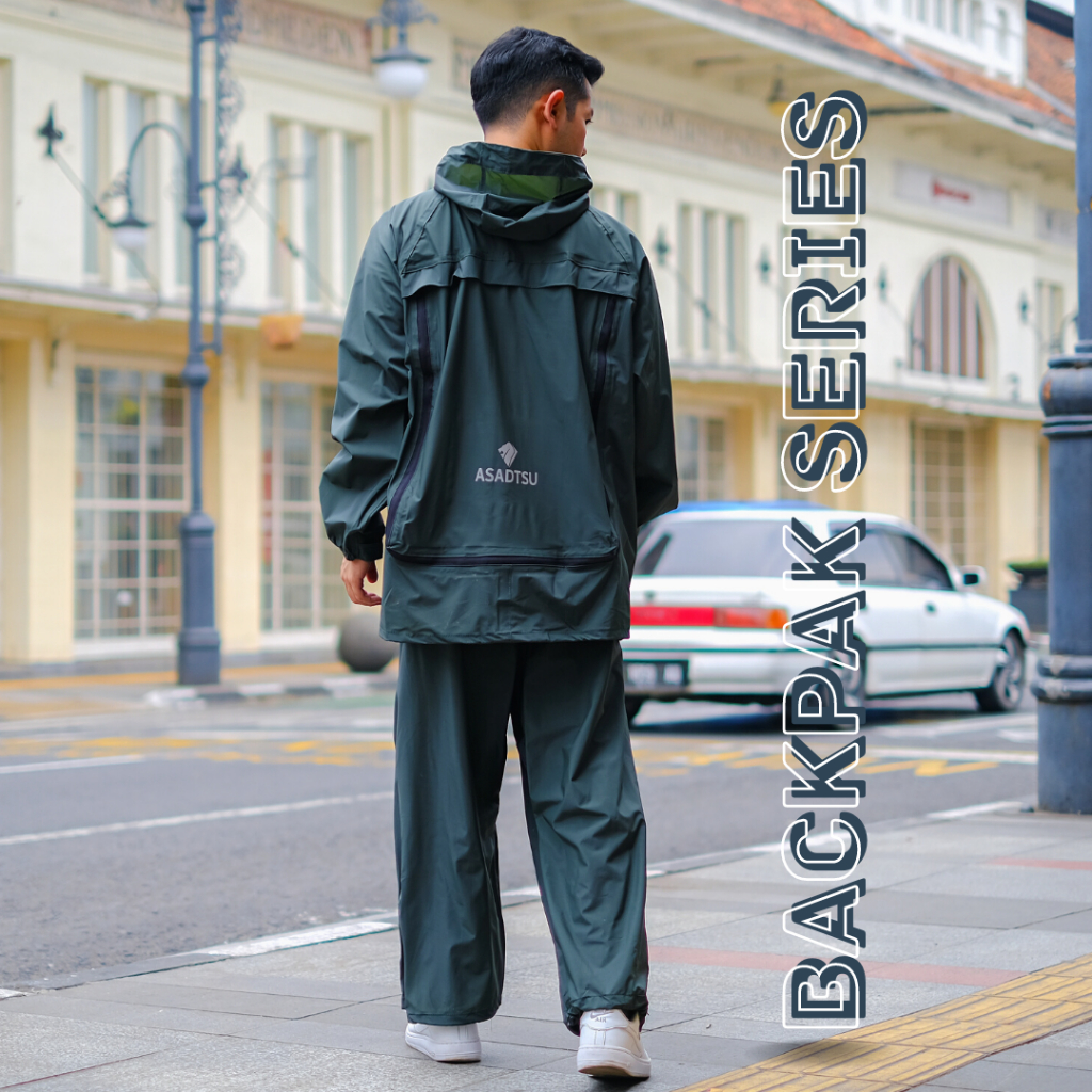 ASADTSU (Hijau Army) Jas Hujan Ransel Backpack Besar Setelan Dewasa Pria Wanita