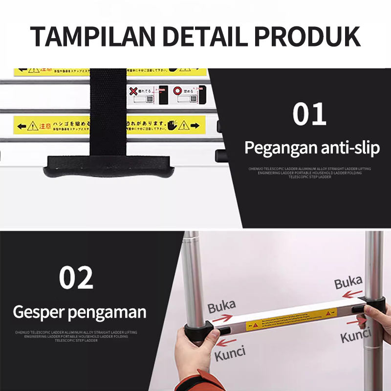 Reaim Tangga Teleskopik Aluminium Portabel Rumah Tangga 2.7/3.8/3.9/4.2/4.3/5/5.1/6.3Meter Multifungsi Dengan Teknik Tangga Lipat