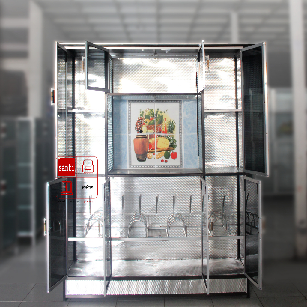 Lemari Dapur Rak Piring Aluminium 4 pintu Hit ABKLAJ Tebal