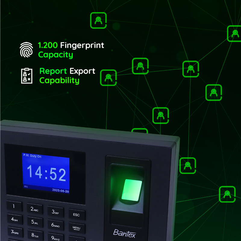 Bantex Mesin Absensi Fingerprint / Sidik Jari Kapasitas 1200 Laporan Otomatis BB4001