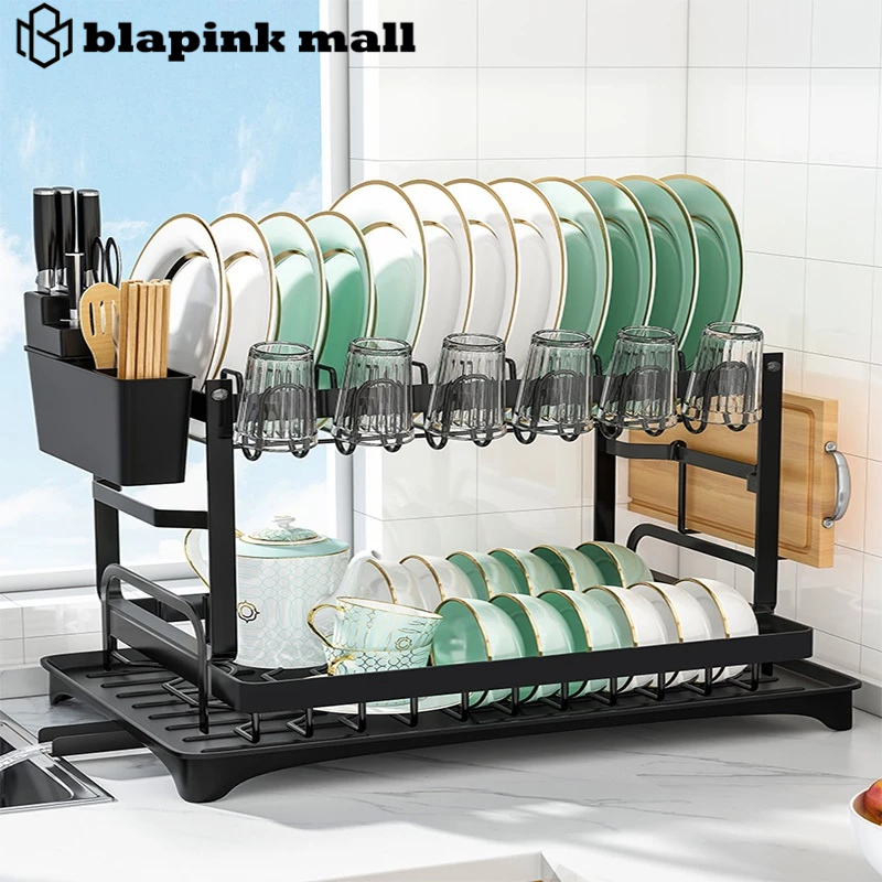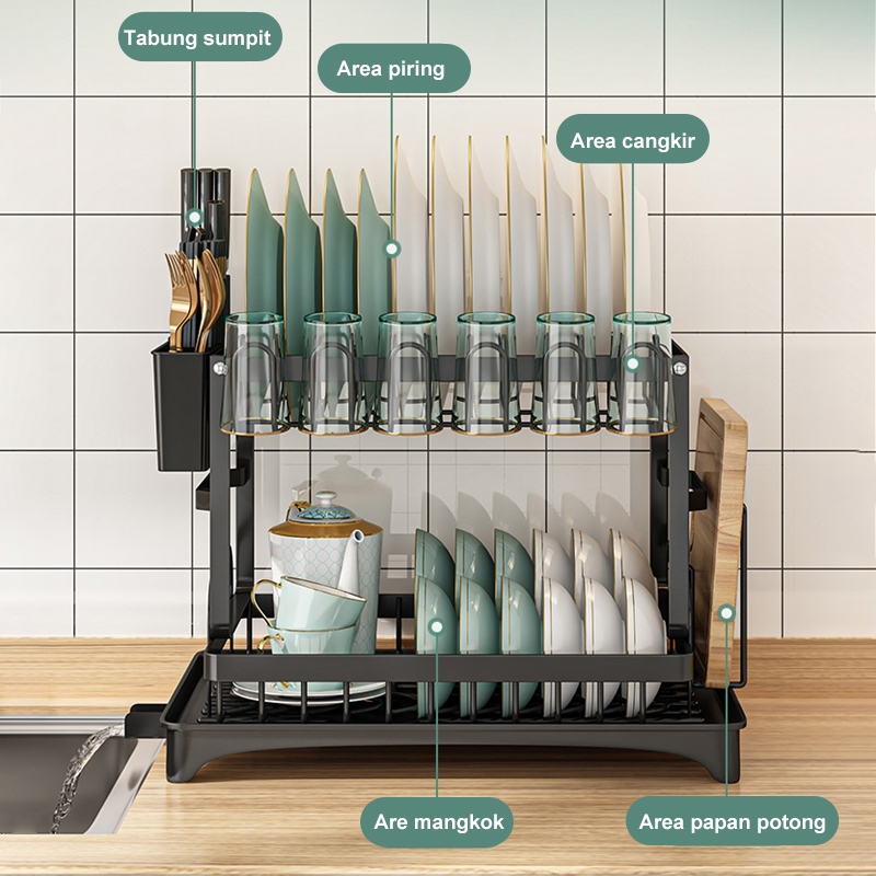 Rak Piring Dapur Stainless Steel Rak Peniris dengan Baki Rak piring lipat Rak Penyimpanan