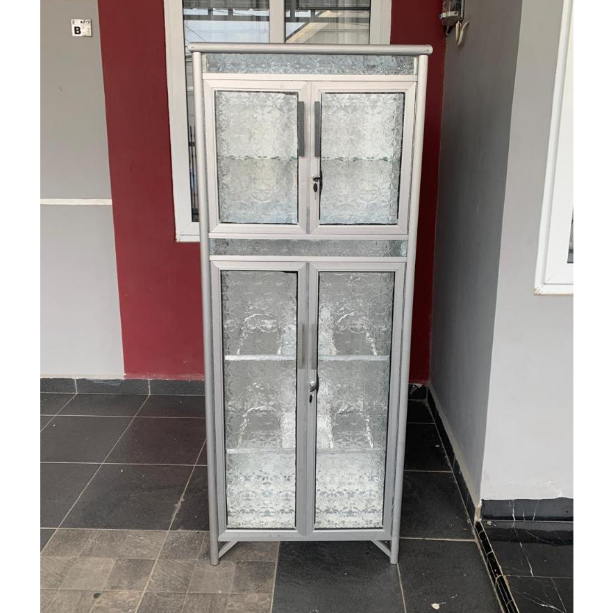 LEMARI PIRING MINI 2 PINTU FULL BOX / RAK PIRING MINI FULLBOX ALUMINIUM KACA BELAKANG SENG