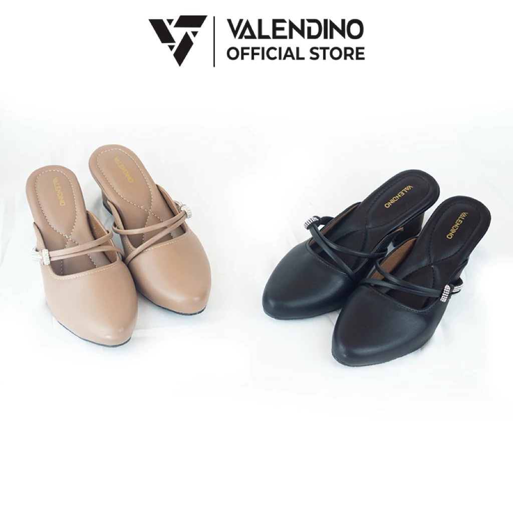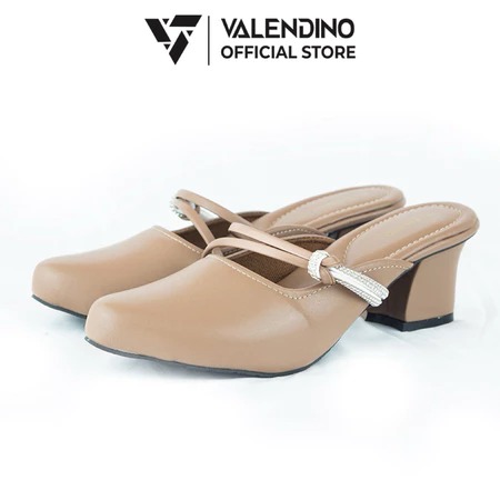 Sendal cewek - sendal heels - high heels - sendal hak - VALENDINO Sandal Wanita Heels 5cm Mules Elegan Chunky