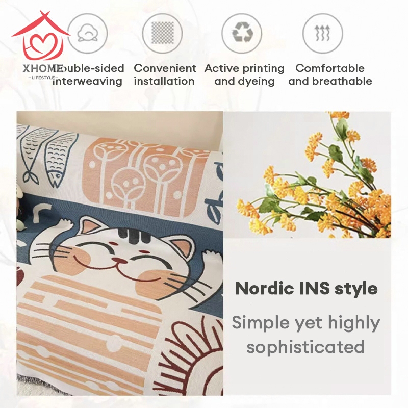 Penutup Sofa Selimut Sofa Cover dua sisi ganda Motif Nordic 1 2 3 4 Seater Sofa Blanket