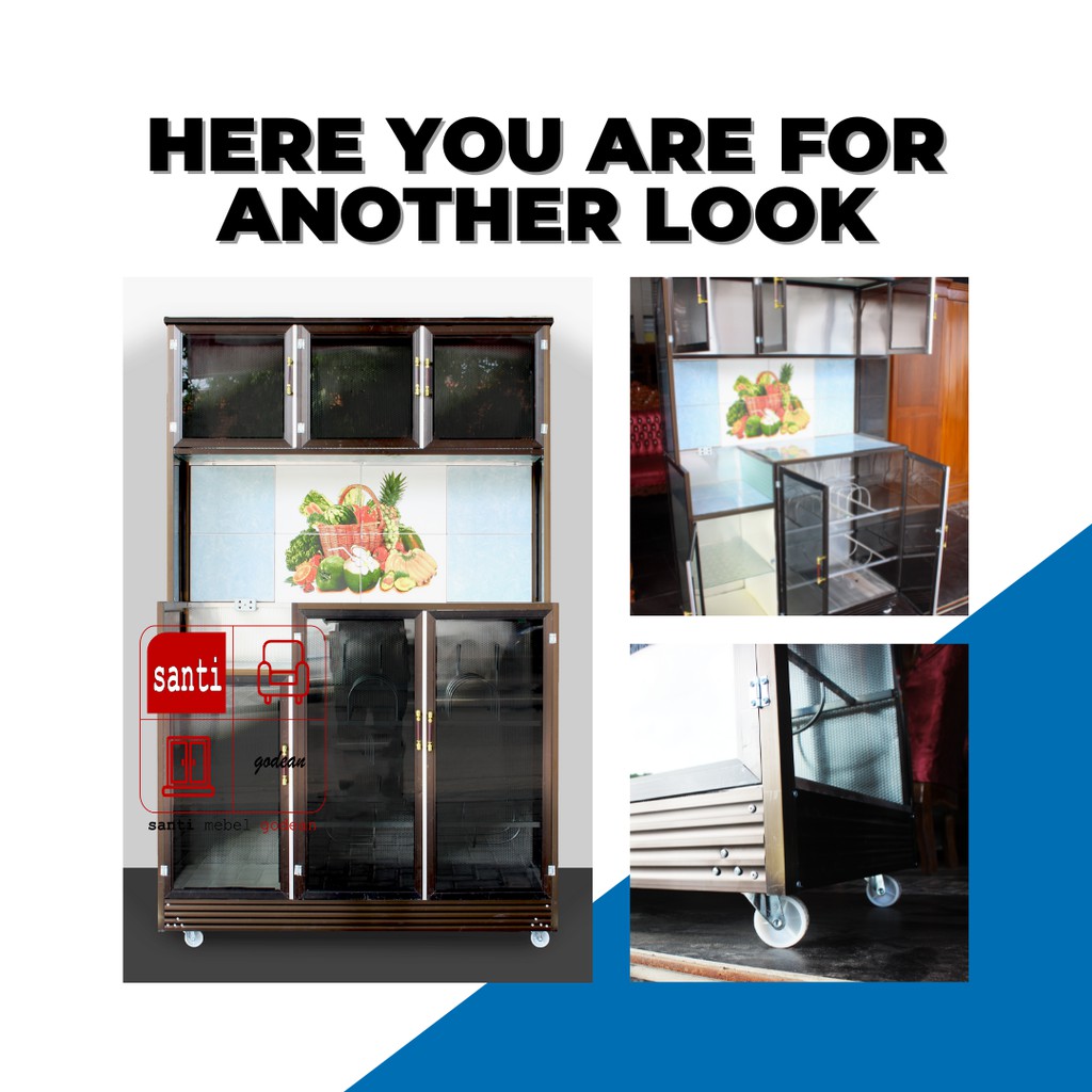 Lemari Dapur Rak Piring Aluminium 3 Pintu HDI Hit ABKTRAP Roda