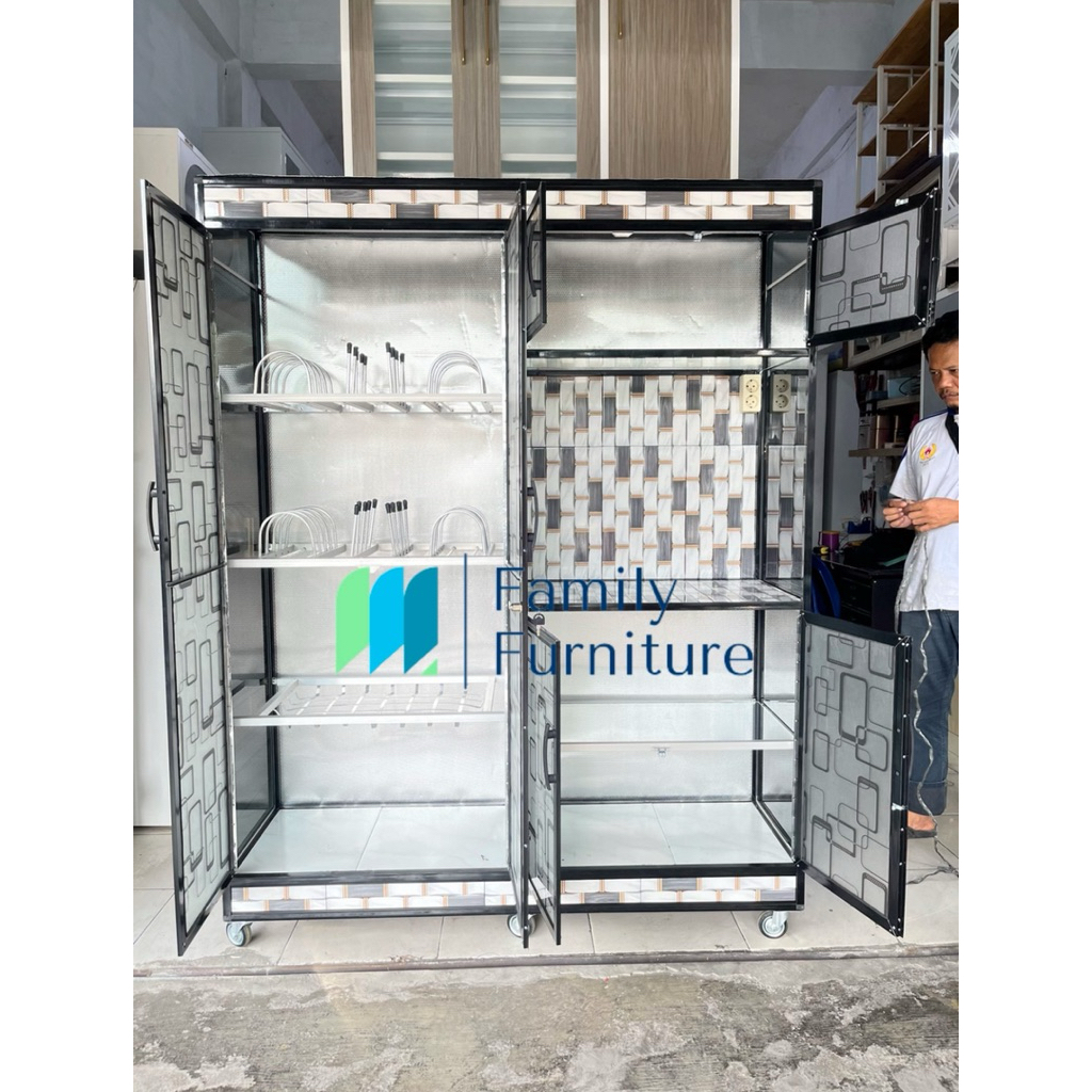 Lemari Rak Piring 4 Pintu Jumbo Aluminium Dinding Belakang Plat