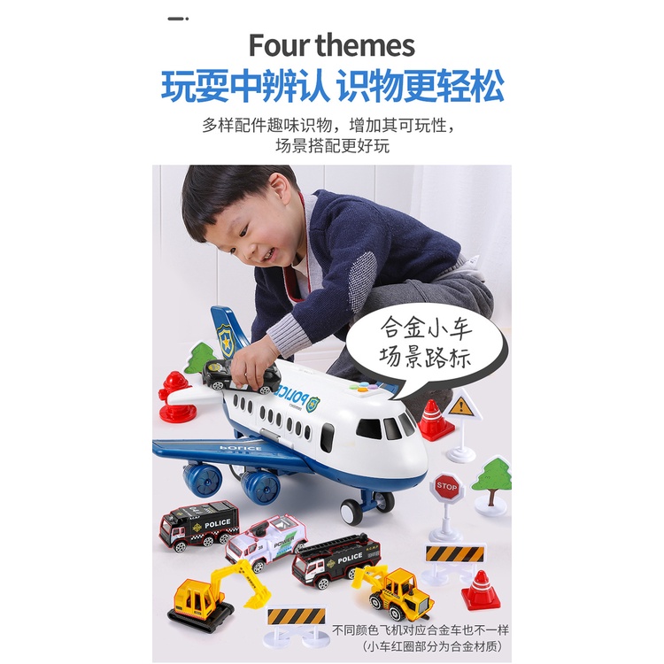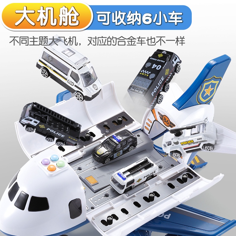 Mainan Pesawat Transformer Penyimpanan Besar dengan Lampu Suara 6 Mobil dan lengkap aksessorisnya - mainan pesawat Polis