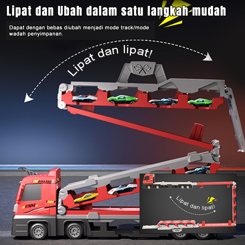 Mobil Truk Container Catapult Mainan Hauler Truk Catapult DeformationTruck Balap Ejeksi Lipat Dua Jalur 207cm
