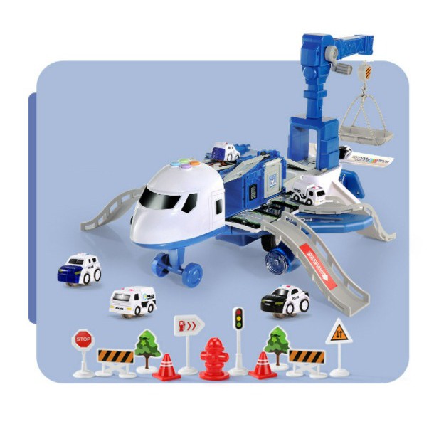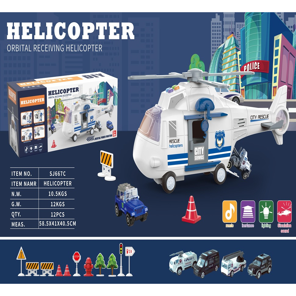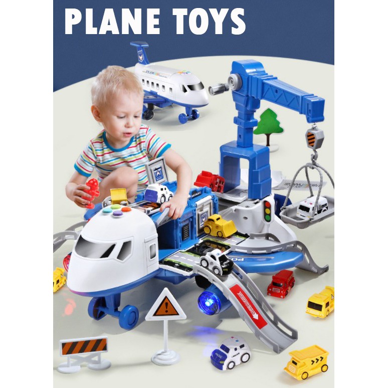 Mainan Anak Pesawat Crane & Mainan Anak Helikopter Ada Lampu Musik Plus 4 Mobil Metal