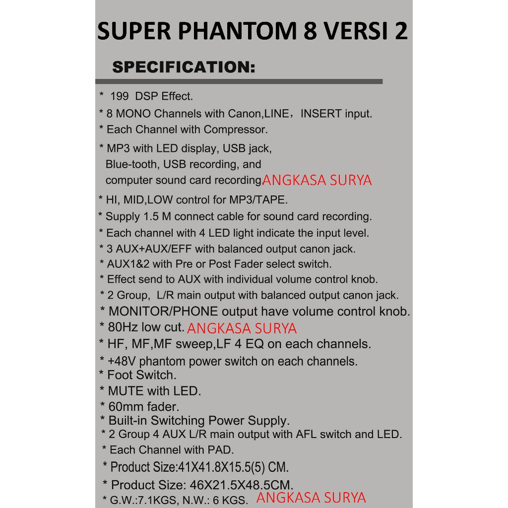 MIXER ZETAPRO SUPER PHANTOM 8 VERSI 2 ORIGINAL / MIXER AUDIO ZETAPRO SUPER PHANTOM 8 VER 2 COMPRESSOR, PAD , AFL