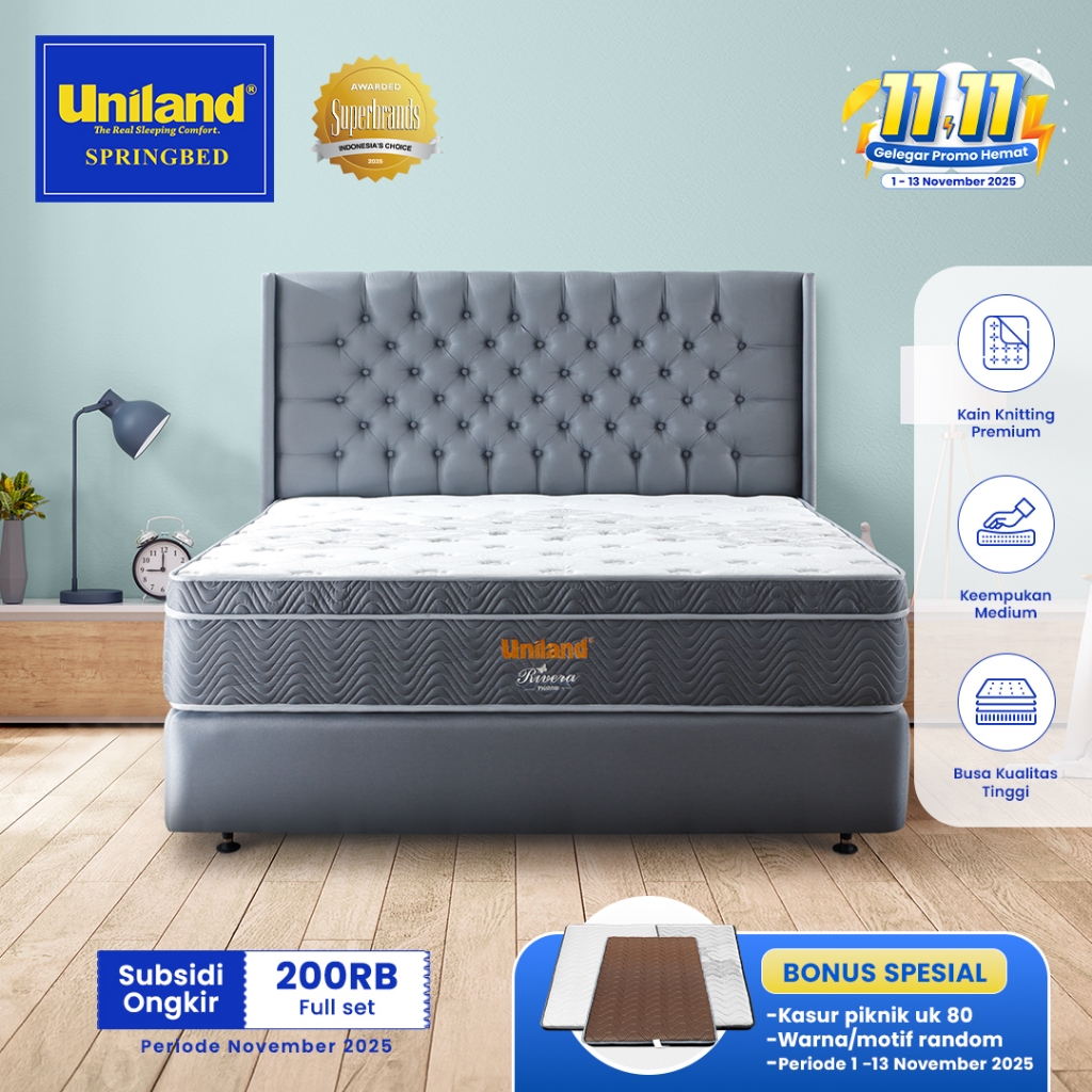 Uniland Springbed Rivera Plushtop Paris - Full Set Kasur Spring Bed Matras