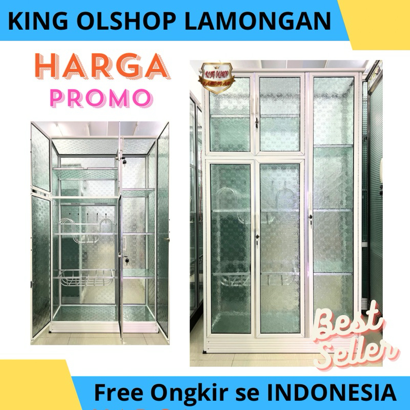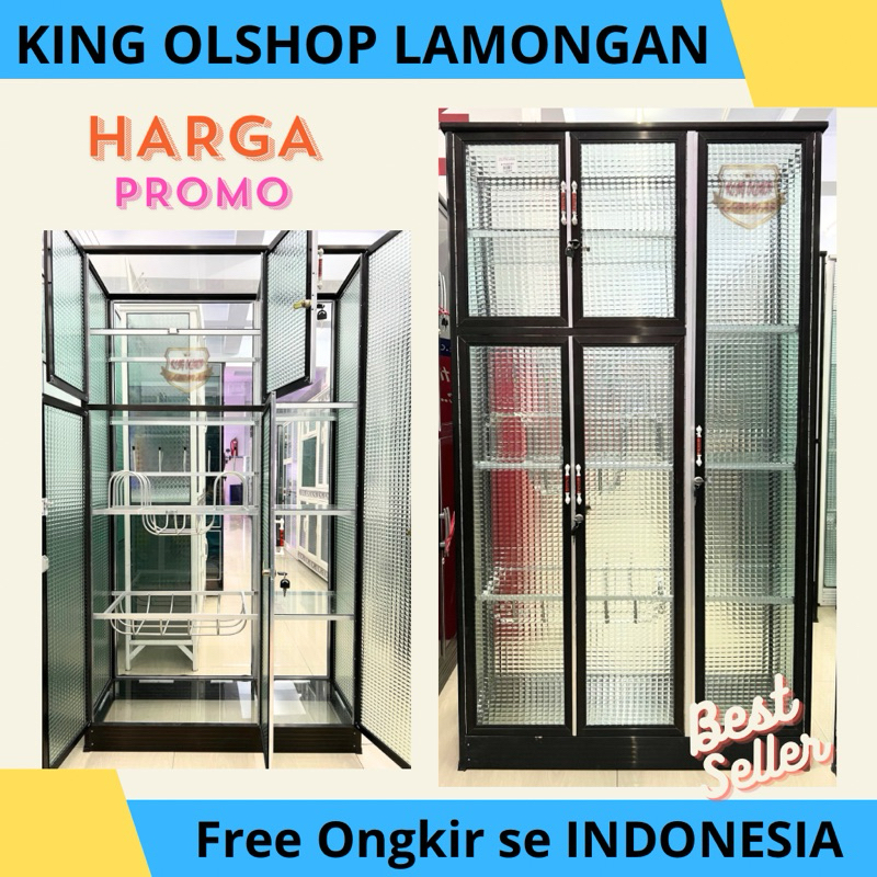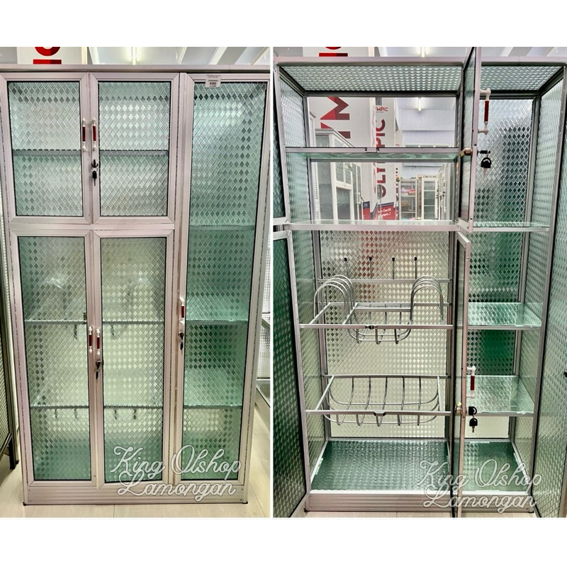 Lemari Rak Piring Almini 5 Kaca Kotak Putih / Hitam / Silver Spandril [LAMONGAN]