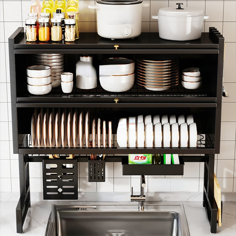 Rak Piring Wastafel 2 Lapis Anti Debu dengan Penutup & Tatakan Anti Bocor/F62