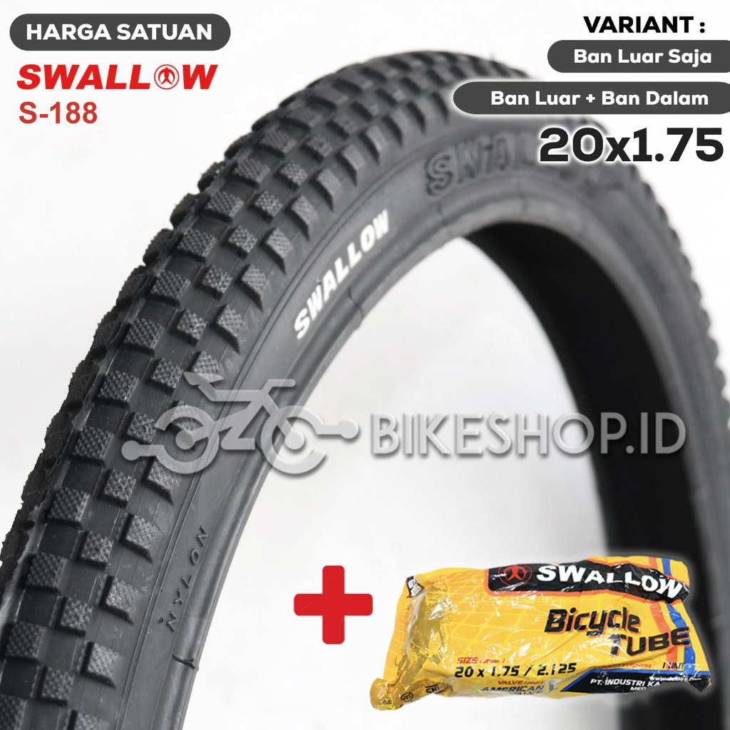 Ban Luar Swallow 20x1.75 Minion/Lipat/BMX 20 x 175 Hitam S-188 | High Quality