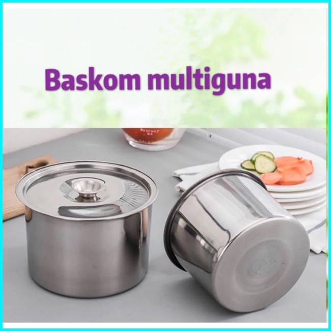 Baskom Bumbu Serbaguna Tebal Dan Dalam Plus Tutup Stainless Steel