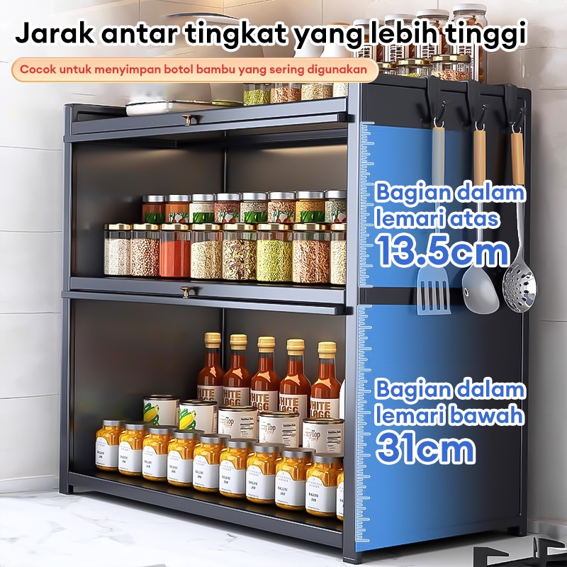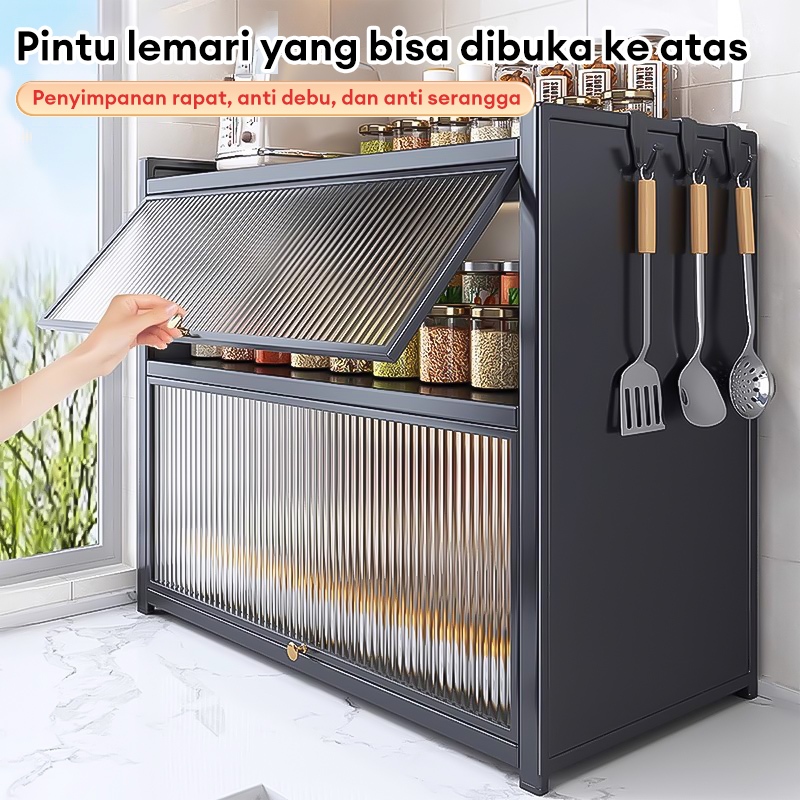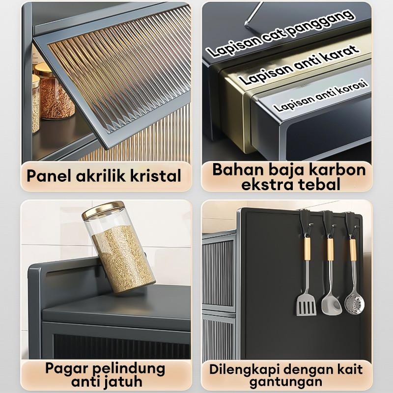 XUXU Rak Piring Minimalis Rak Oven Microwave Rak Lemari Dapur Dengan Pintu Rak Kabinet Dapur Rak Dapur Stainless