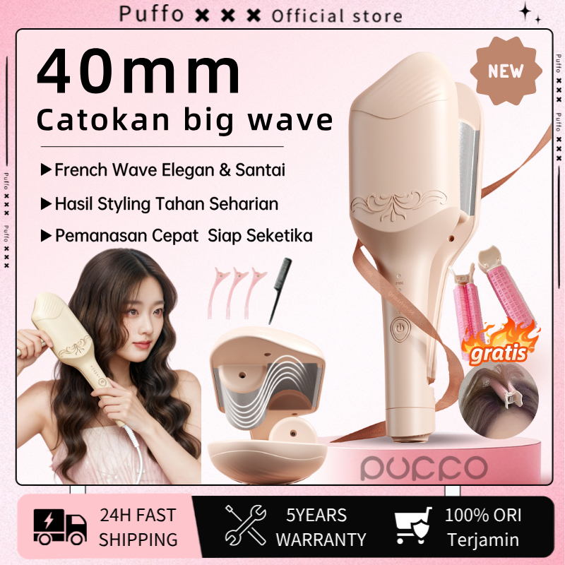 Puffo 40mm Catokan Rambut Mermaid Wave Keriting Ion Negatif Tahan Lama Hair Styler Big Wave