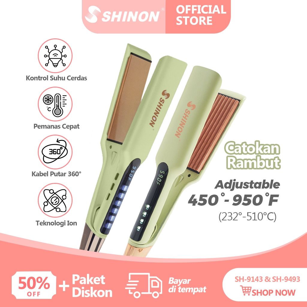 SHINON Catokan Rambut s Pengeriting Rambut dengan Teknologi Ion Negatif Catok Antilengket 2 in 1 Multifungsi SH-9143 SH