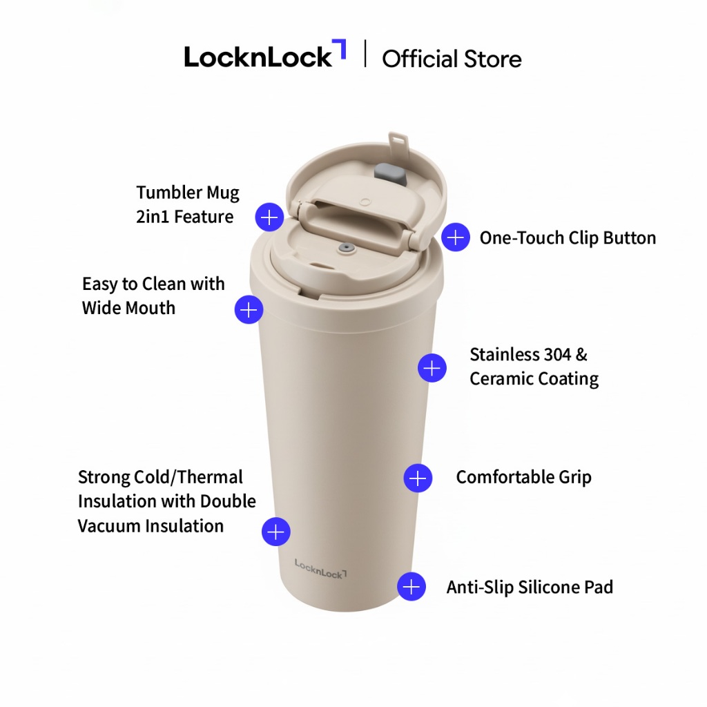 LocknLock Energetic One-Touch Clip Ceramic Coating Tumbler 550ml - LHC3414