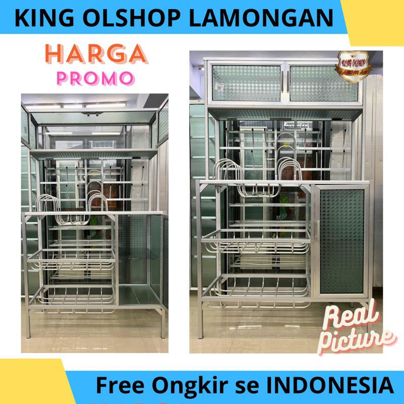 Lemari Rak Piring Almini Double Box Hitam/ Silver [LAMONGAN]